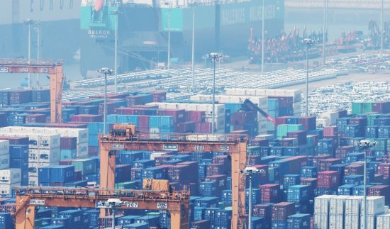 도널드 트럼프 미국 대통령이 한국산 수입품에 25%의 상호관세를 부과하겠다고 발표한 지난 3일 경기 평택시 평택항에 컨테이너와 수출용 자동차가 가득하다. 연합뉴스 |