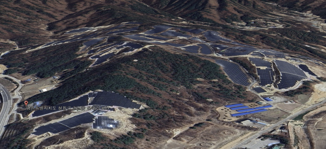 강원도 철원군 두루미 태양광발전소 전경. 구글어스 |
