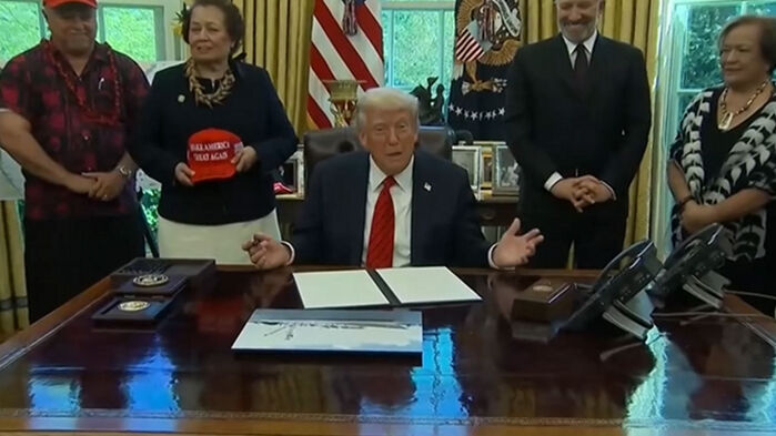 미국 수산업 보호를 위한 행정명령 서명 행사에 참석한 미국 수산업자들이 트럼프 대통령에게 호소합니다.