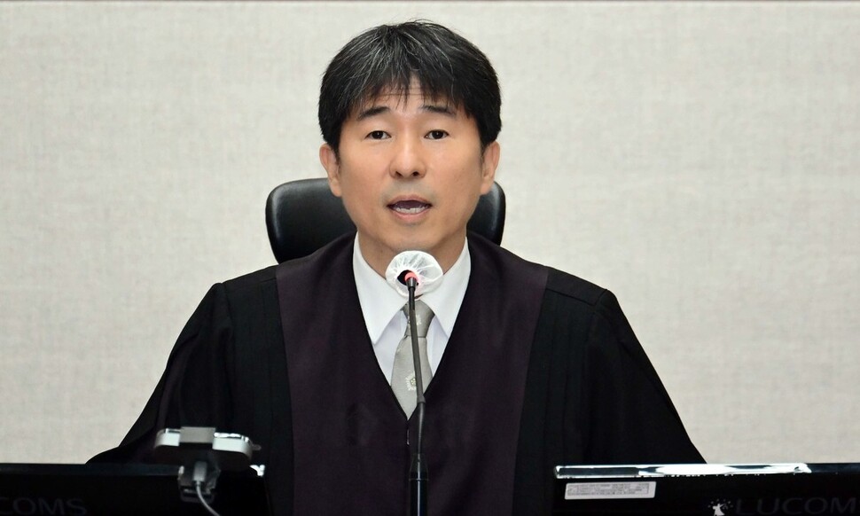 지귀연 부장판사가 21일 오전 서울 서초구 서울중앙지법 417호 법정에서 열린 윤석열 전 대통령의 내란 우두머리 혐의 재판을 하기 전 언론 공개에 대해 발언을 하고 있다. 사진공동취재단 |