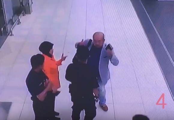 CCTV에 찍힌 김정남 피살 장면 - 김정은 북한 노동당위원장의 이복형인 김정남이 지난 13일 쿠알라룸푸르 국제공항2에서 독극물 공격을 받는 장면을 담은 CCTV 영상이 일본 TBS 방송을 통해 공개됐다. 김정남이 공항 관계자에게 고통을 호소하고 있다. 2017.2.20 [TBS 유튜브 캡처=연합뉴스] |