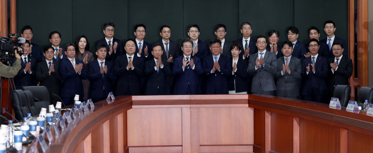 이재명 더불어민주당 대선 경선 후보와 서유석 금융투자협회 회장, 주요 증권사 리서치센터장 등이 21일 서울 여의도 금융투자협회에서 열린 ‘자본시장 활성화를 위한 정책간담회’에 앞서 기념촬영을 하고있다. 신태현 기자 holjjak@ |