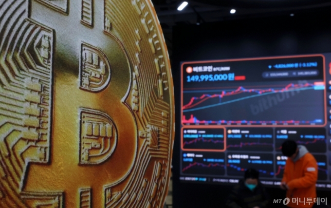 관세 전쟁 여파로 비트코인 가격이 10만 달러 밑으로 급락한 가운데 3일 서울 서초구 빗썸 라운지 강남점 전광판에 비트코인 시세가 표시되고 있다./사진=뉴시스 |