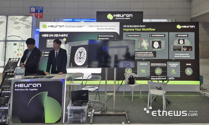 휴런은 이번 행사에서 부스 전시로 '휴런 스트로케어 스위트'와 '휴런CTP·CTA' 등을 선보였다. 휴런 스트로케어 스위트는 비조영 CT만으로도 3분 이내에 뇌출혈 또는 응급 뇌 대혈관 폐색을 선별하고 ASPECTS 점수를 자동 산출하는 인공지능(AI) 솔루션이다. 지난해 보건복지부로부터 '혁신의료기술'로 선정된 뒤 6월부터 전국 의료기관 응급실과 응급의료센터 등에서 사용되고 있다.