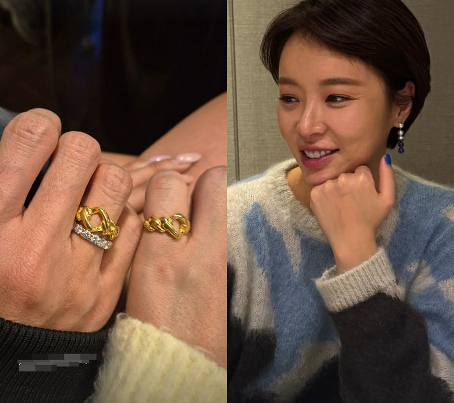 공개된 사진들 속에서 황정음은 배우 오윤아와 함께 식사 자리를 즐기고 있는 듯한 모습. 특히 황정음은 오윤아와 반지를 맞춘 듯 똑같은 금빛 반지를 자랑하고 있어 눈길을 끌었다.