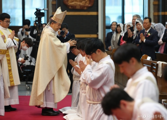 (수원=뉴스1) 김영운 기자 = 6일 오후 경기 장안구 정자동 주교좌성당에서 ‘2024년 천주교 수원교구 사제 서품식’이 거행되고 있다. 2024.12.6/뉴스1 Copyright (C) 뉴스1. All rights reserved. 무단 전재 및 재배포, AI학습 이용 금지. /사진=(수원=뉴스1) 김영운 기자 |