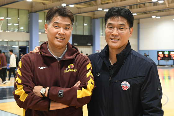 사상 첫 ‘쌍둥이 감독’ 대결을 펼치는 조상현 LG 감독(왼쪽)과 조동현 현대모비스 감독. 첫 경기는 24일 열린다. [사진 KBL] |
