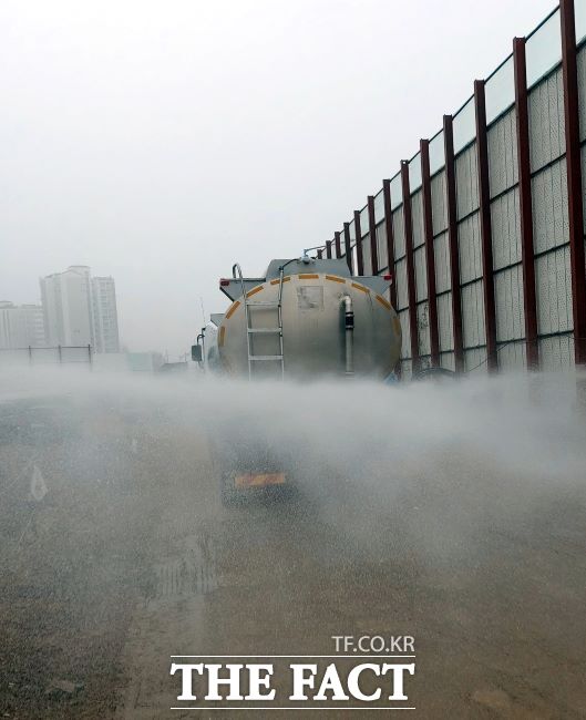 미세먼지 비상저감조치에 따른 공사장 살수 강화 조치 이행 모습 /부천시 |