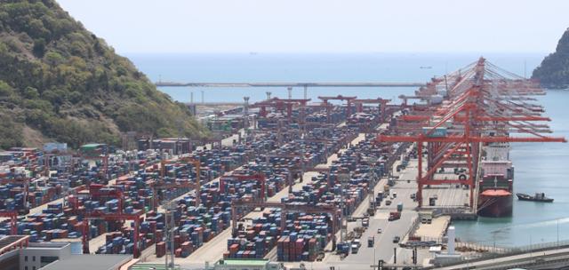 21일 부산항 신선대부두에 컨테이너가 가득 쌓여 있다. 뉴스1 |