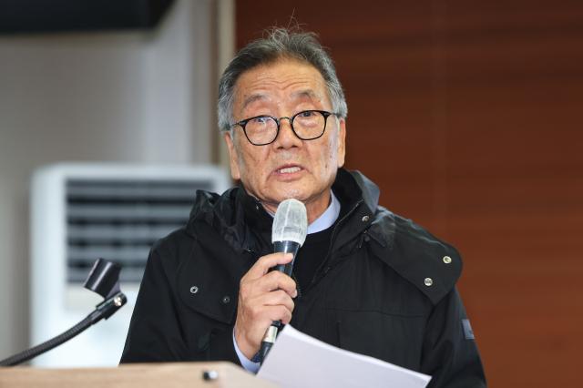22일 서울 중구 프레스센터에서 대통령국민후보추대위원회 주최로 열린 한덕수 대통령 권한대행 대선 후보 출마 요청 국민추대 기자회견에서 박상섭 공동위원장이 발언하고 있다. [사진=연합뉴스] |