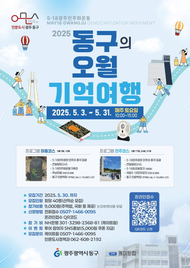 [더팩트ㅣ광주=김동언 기자] 광주 동구청이 5·18 민주화운동 제45주년을 맞아 민주화 유적지 프로그램(동구의 오월 기억 여행)을 오는 5월 한 달간 운영한다고 22일 밝혔다.