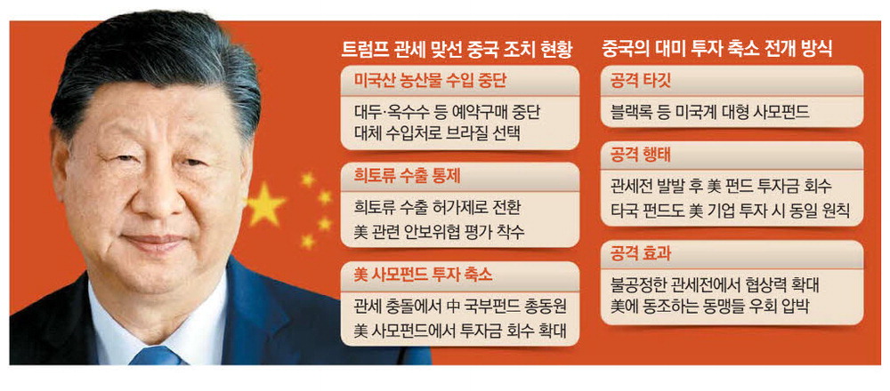 중국 국부펀드들이 블랙록 등 미국 대형 사모펀드에서 투자금을 빠르게 회수하고 있는 것이다. 이는 미·중 관세전쟁에서 미국에 대한 직접 압박은 물론 미국에 동조하는 동맹국에도 유사한 자금 환수가 이뤄질 수 있음을 경고하는 의미여서 국제사회를 긴장시키고 있다.