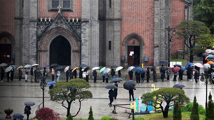 한국 천주교 주교회의의 공식 추모 공간은 서울 명동대성당에 마련됐는데요. 한국에 각별한 애정을 보이며 기도해 왔던 프란치스코 교황을 추모하기 위해 비가 오는 궂은 날씨에도, 많은 사람들이 이곳을 찾았습니다.
