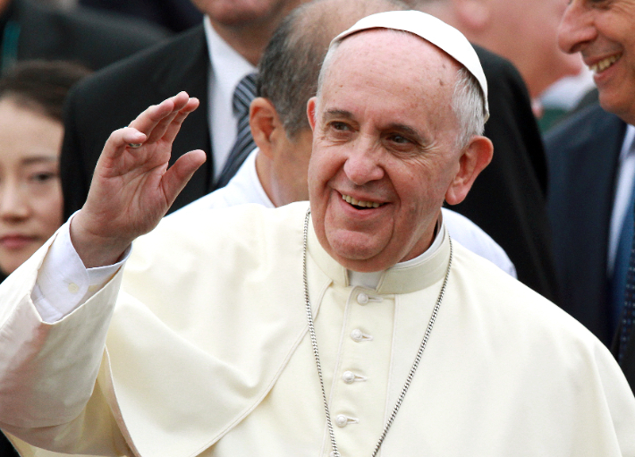 2013년 3월13일 당시 콘클라베에서 신임 교황으로 선출된 프란치스코 교황이 바티칸 성 베드로 성당 발코니에 모습을 드러내고 있다. 로이터-연합뉴스 |