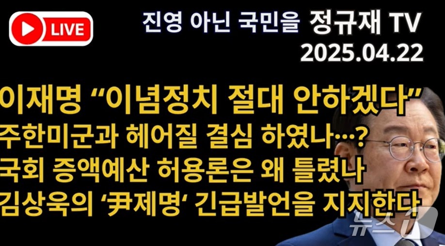 이재명 더불어민주당 대선경선 후보가 지난 21일 저녁 대표적 보수논객인 정규재, 조갑제 씨와 저녁을 함께 하면서 "이념정치 안하겠다"는 등 자신의 생각을 밝혔다. (유튜브 갈무리) ⓒ 뉴스1 |