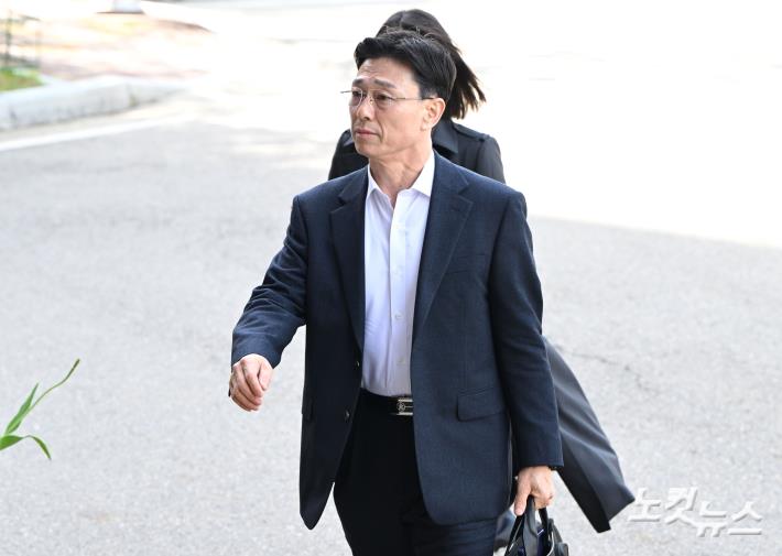 임성근 전 해병대 1사단장이 해병대 채 상병 순직 사건에 대한 외압 의혹 수사 관련 휴대전화 포렌식 참관을 위해 23일 오전 경기 과천시 고위공직자범죄수사처(공수처)로 출석하고 있다.