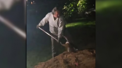 한 남성이 아르헨티나 산루이스에 있는 자신의 집 정원에 장모 시신을 묻고 있다. 출처=영상 캡처 |