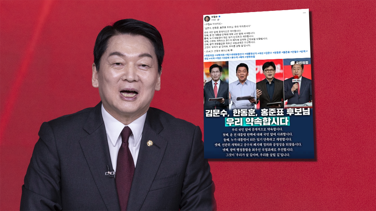 안철수 국민의힘 대선 경선 후보가 김문수, 한동훈, 홍준표 세 후보에게 윤석열 전 대통령 탄핵에 대해 사과하자고 제안했습니다