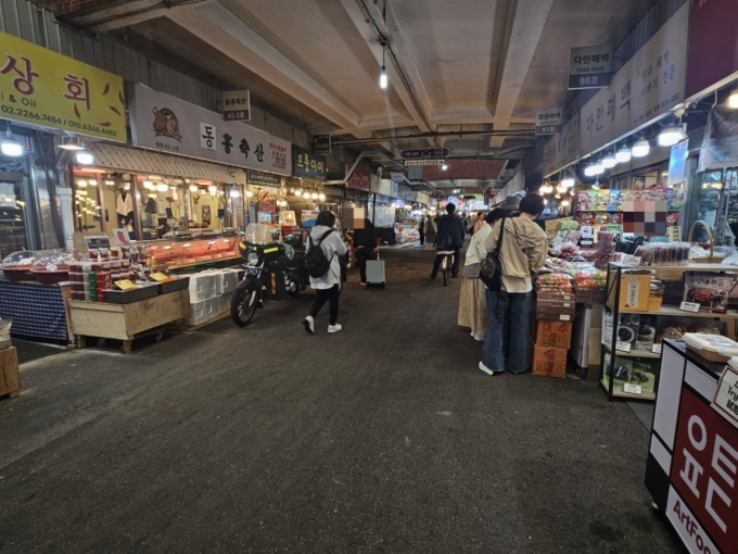 23일 오전 서울 종로구 광장시장에서 손님들이 한 가게 앞에서 물건을 살펴보고 있는 모습./사진=박상혁 기자. |