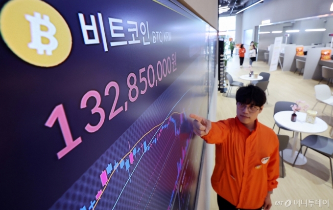 23일 서울 서초구 빗썸라운지 전광판에 비트코인 등 가상자산 시세가 표시되고 있다. /사진=뉴스1 |
