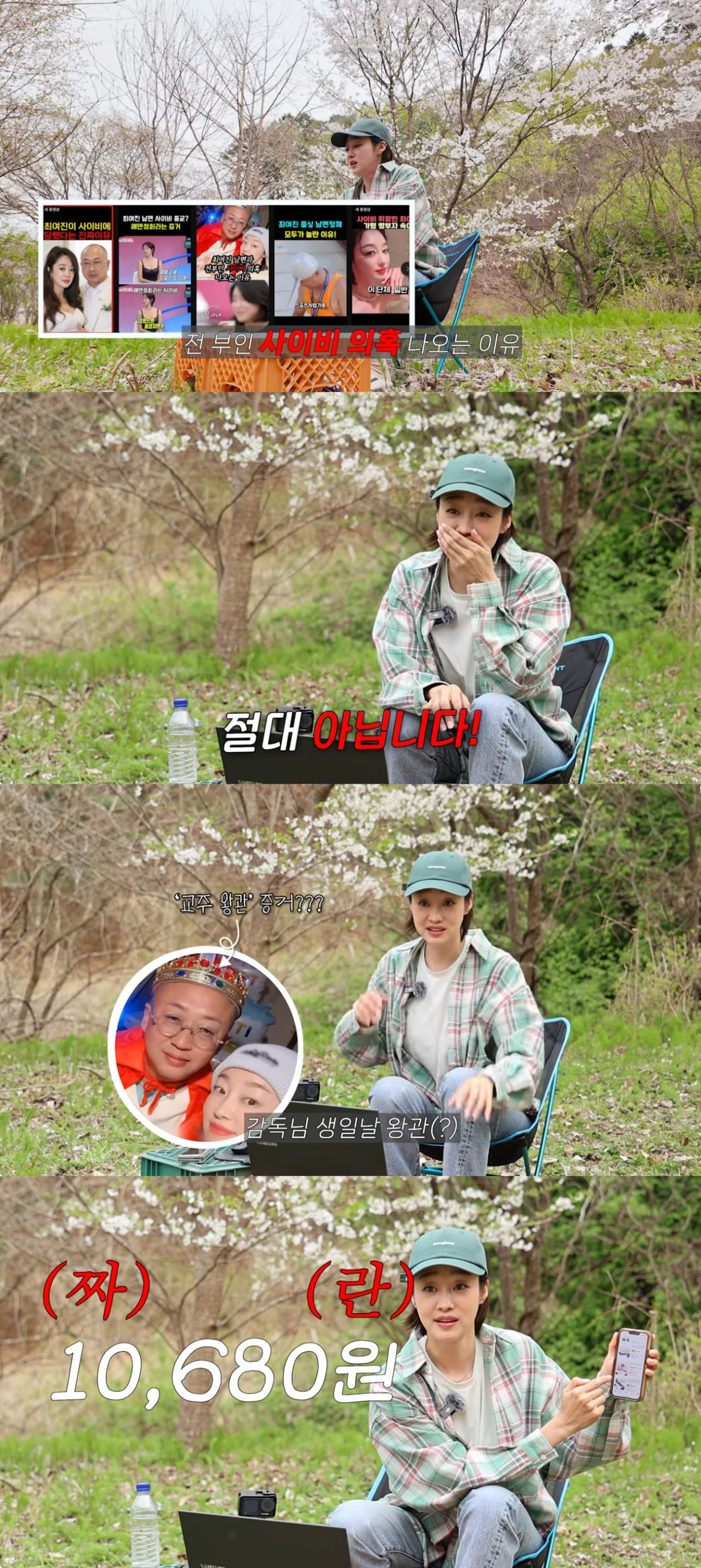 먼저 최여진은 사이비 의혹에 대해 “여기 상호가 ‘클럽 에덴’이다. 이름 두 글자가 같다는 이유로 어떤 특정 단체에 연관이 되어 이슈가 됐는데 절대 아니다”라며 “저 감금 안 당했고 가스라티이 안 당했다. 증거라고 생일날 왕관 쓴 걸 짚었는데 제가 쿠팡에서 만 얼마 주고 산 거다. 땡이다”라고 반박했다.