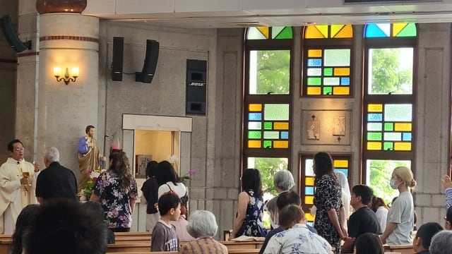 지난 20일 부활 미사 때 일본 오키나와 나하 아사토성당. /김숨 소설가 |