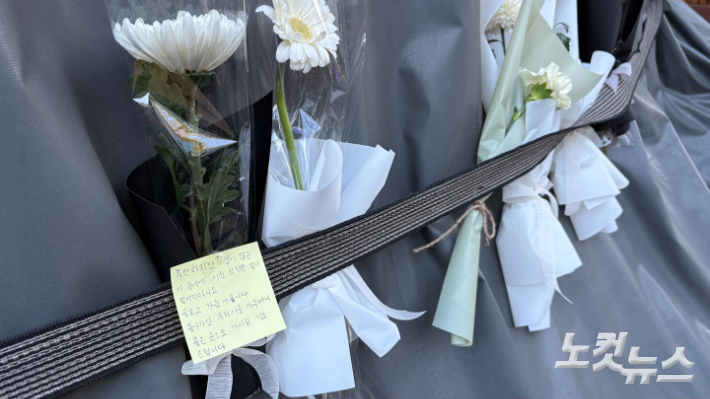 마트 앞엔 흰색 국화꽃…주민들 발걸음 떼지 못해