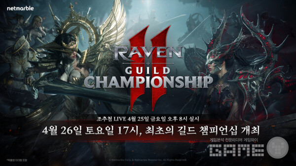 넷마블이 25일 오후 8시에 MMORPG '레이븐2'의 첫 대회 이벤트 '레이븐2 길드 챔피언십' 조 추첨 라이브 방송을 실시한다.