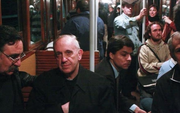 프란치스코 교황이 아르헨티나 부에노스아이레스 대주교였던 베르골리오 추기경 시절인 2008년 지하철을 타고 이동하는 모습이 언론에 잡혔다. AP 연합뉴스 |