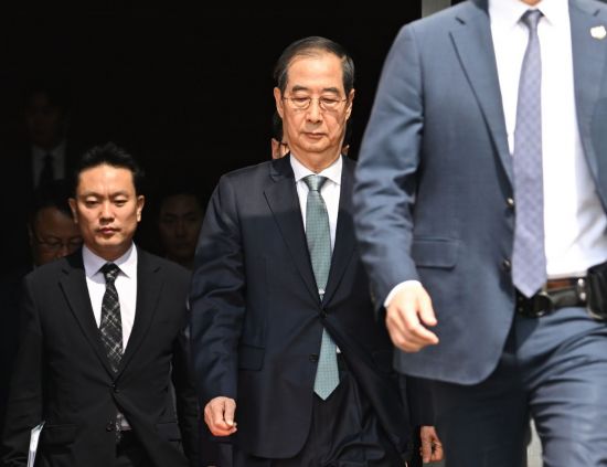 한덕수 대통령 권한대행 국무총리가 24일 국회 본회의에서 추가경정예산안 시정연설을 마친 뒤 국회를 떠나고 있다. 연합뉴스 |