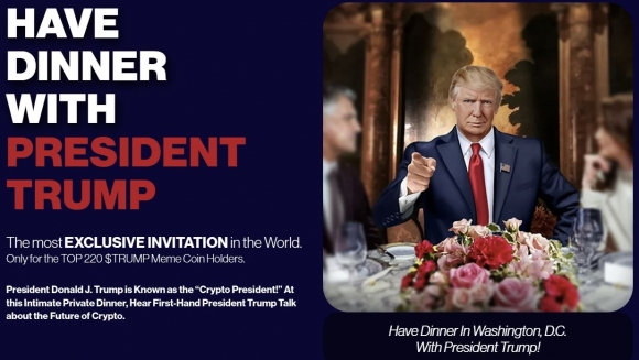 도널드 트럼프 미국 대통령과의 만찬을 약속하며 투자자들의 관심을 모으고 있는 ‘오피셜 트럼프’ 밈코인 공식 초대 웹사이트 |