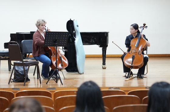빈 필하모닉 역사상 최초 여성 콰르텟인 ‘다스 콰르텟’과 함께하는 마스터클래스 현장. 첼리스트 우르술라 벡스(Ursula Wex)가 참여 학생의 연주를 세심하게 지도하고 있다. |