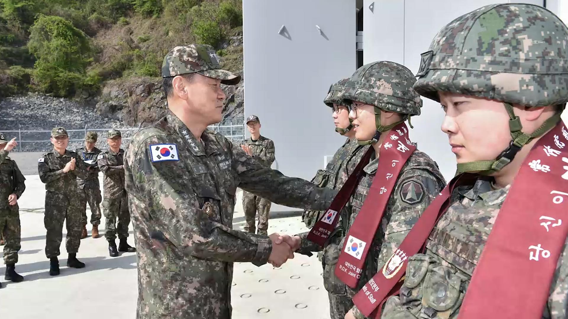 김명수 합참의장은 오늘(24일) 한국형 전술지대지유도무기, KTSSM(케이티즘) 사격대와 탄도미사일 감시 임무를 수행하는 중부지역 미사일우주감시대를 방문했습니다.