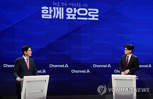 한 후보는 자기 가족 명의로 당원 게시판에 윤 대통령 부부 비판 글이 올라왔다는 의혹에 대한 김 후보의 지적에 대해 "당원들이 익명 게시판에서 대통령이나 영부인이나 당 대표를 비판하는 글을 게시하면 안 되나"라고 답했다.