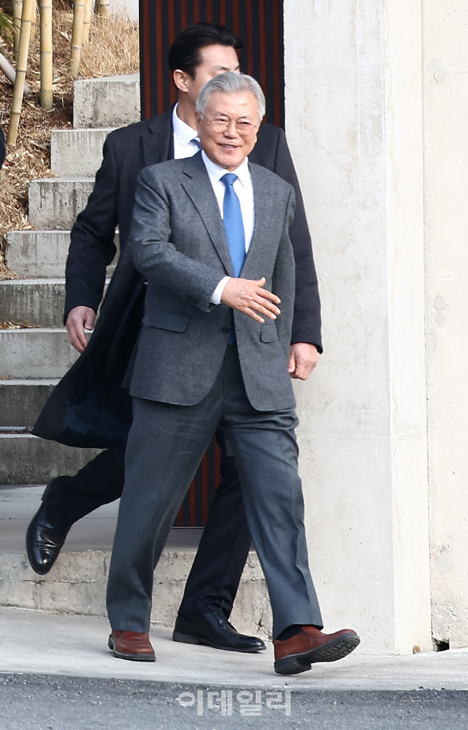 문재인 전 대통령이 지난 1월 30일 오후 경남 양산시 하북면 평산마을 사저에서 이재명 대표와 면담을 마치고 나오며 이동하고 있다.(사진=뉴스1) |