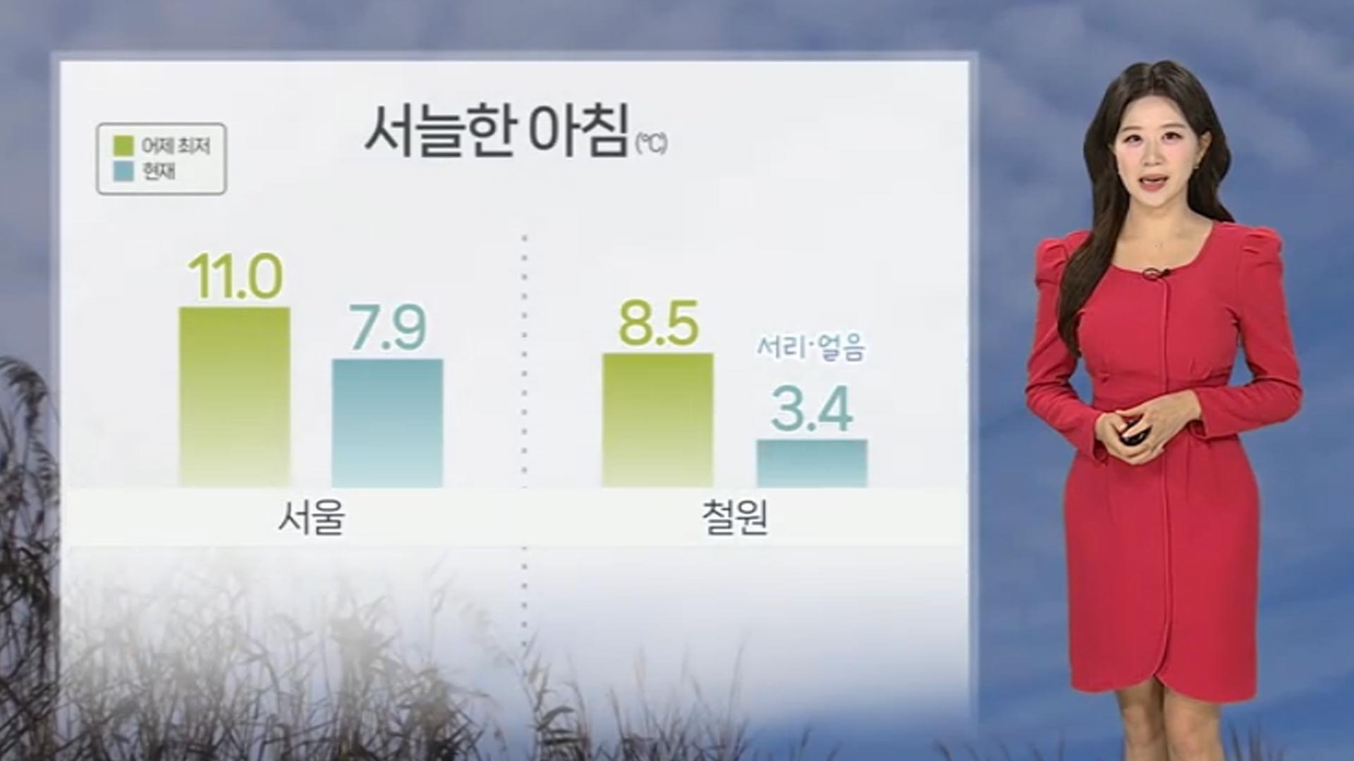 북서쪽의 찬바람이 내려와 어제보다 쌀쌀하겠습니다.