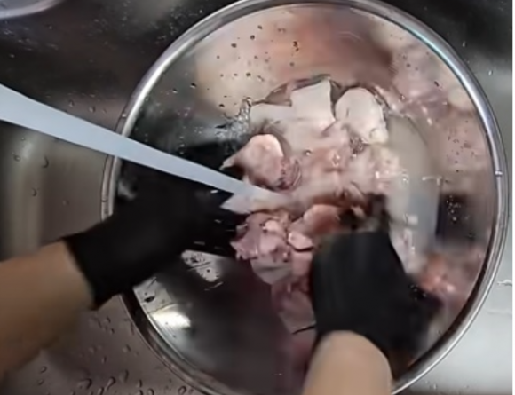 싱크대에서 생닭을 흐르는 물에 씻을 경우 식중독을 유발하는 세균이 주방에 있는 조리 도구와 음식 뿐만 아니라 생닭을 씻는 사람의 입까지 들어간다는 주장이 나와 주의가 요구된다. 유튜브 채널 ‘포켓생물’ 캡처 |