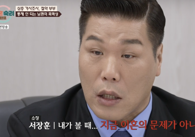 [OSEN=김수형 기자] ‘이혼숙려캠프’에서 서장훈이 프로그램을 떠나, 사상최초로 남편의 폭력성에 치료를 권하며 가족의 안전이 심각하게 위험한 상황을 전했다.