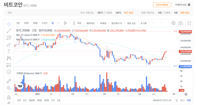 국내 거래소에서도 유사한 흐름이 나타났다. 같은 시간 빗썸 기준 BTC는 전일 대비 0.13% 오른 1억 3413만 9000원을 기록했다. ETH는 0.55% 내린 253만 원, XRP는 0.19% 떨어진 3147원이다.