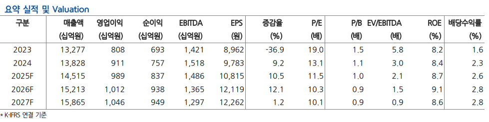 김 연구원은 "실적 증명으로 바닥을 확인했고 남은 것은 현재 12배 수준의 P/E에서 추세적 상승을 위한 대규모 주주환원 또는 성장을 위한 인수합병(M&A) 등 주주가치 확대 조치"라고 덧붙였다.