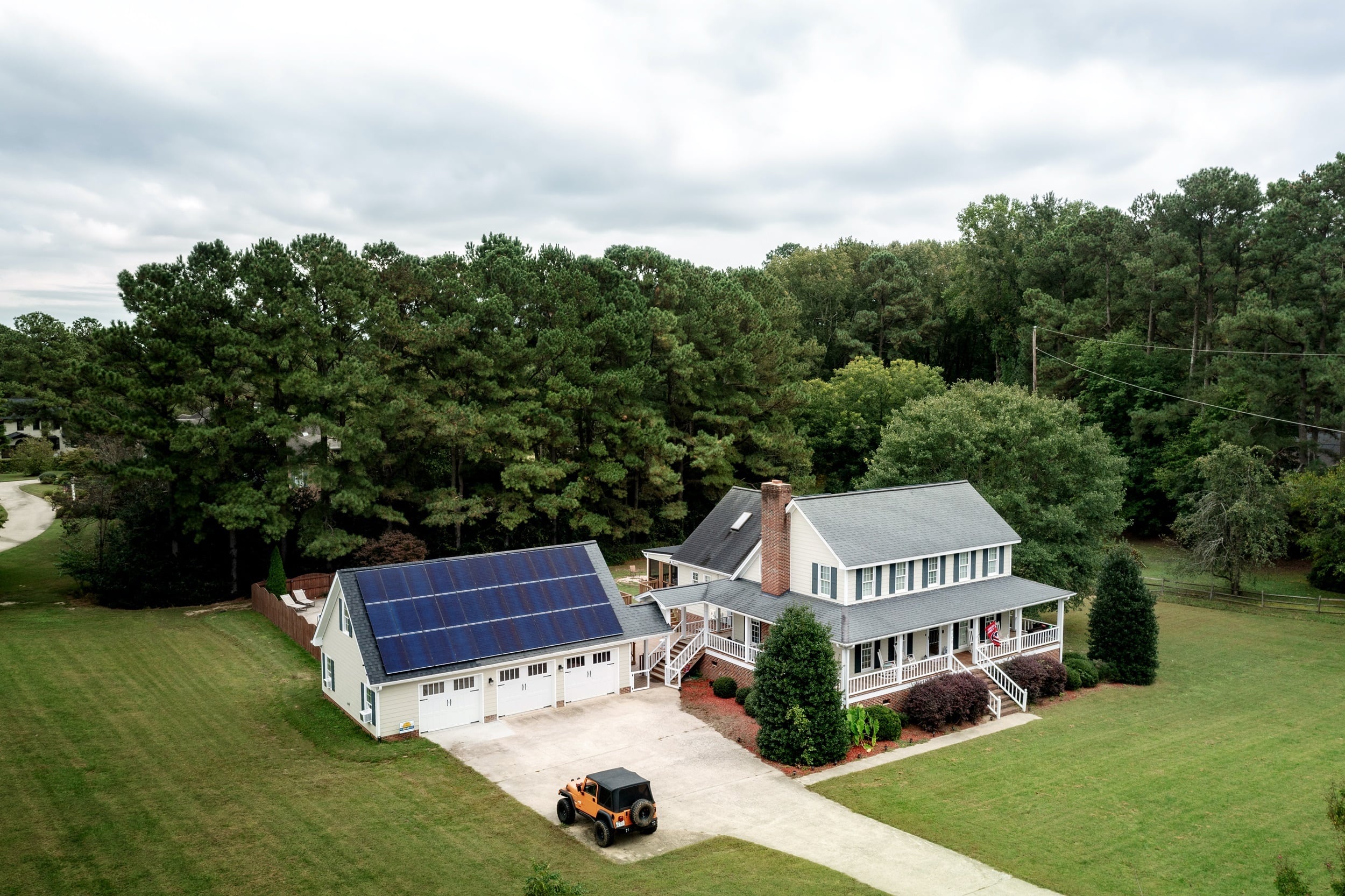 한화큐셀의 주택용 태양광 모듈이 설치된 미국 노스 캐롤라이나주 주택 전경./한화솔루션 |