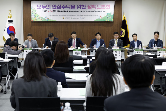 24일 서울주택도시공사(SH공사)와 서울특별시의회, 한국도시계획가협회가 개최한 '모두의 안심주택을 위한 정책 토론회'에서 패널 토론이 진행되고 있다. |