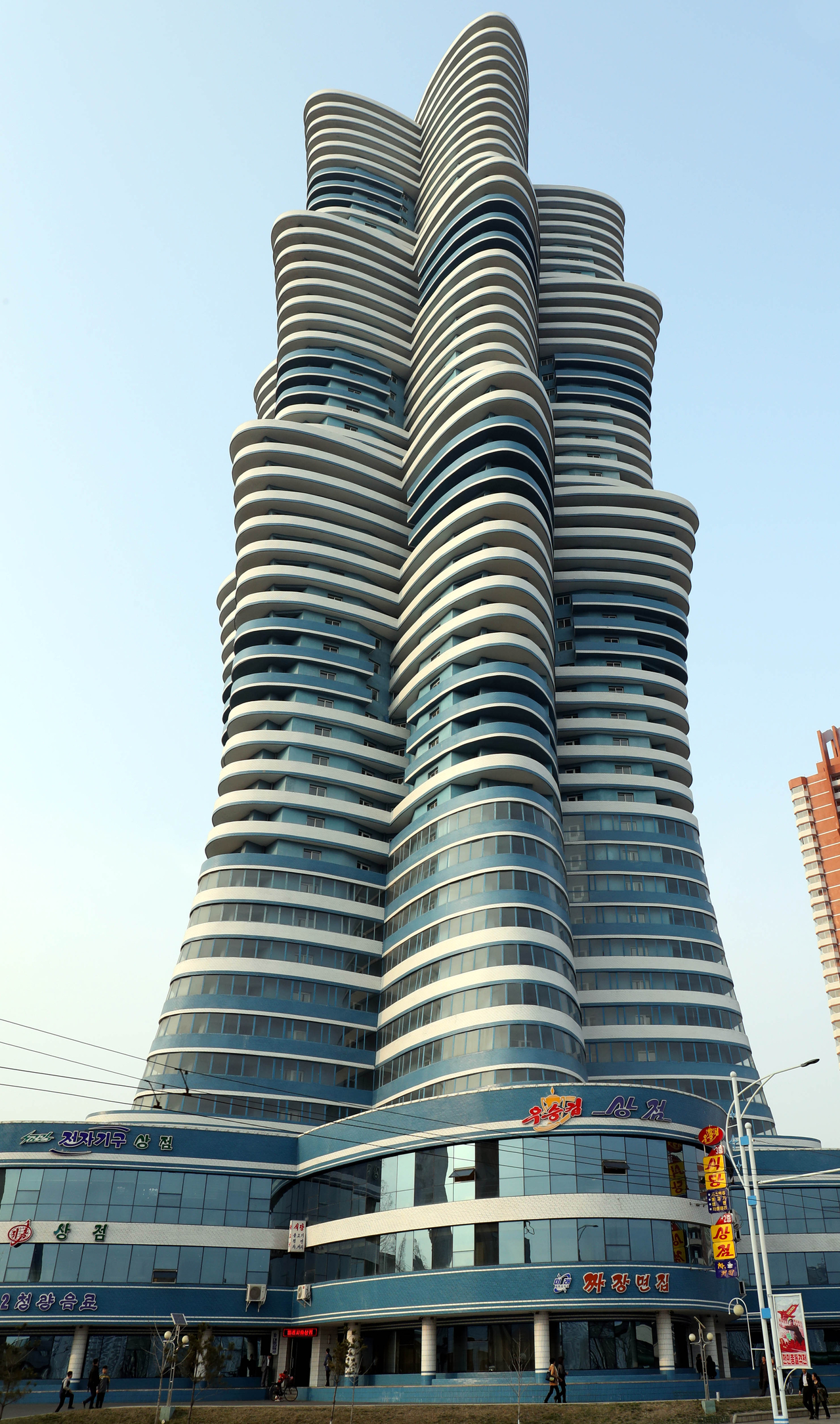 이 건물은 2015년, 김정은 지시로 9개월 만에 완공됐다. 건설에는 군인 건설자와 돌격대가 투입됐으며, 이는 전문 인력 없이 무리하게 고층 건축을 강행한 대표적 사례로 꼽힌다.
