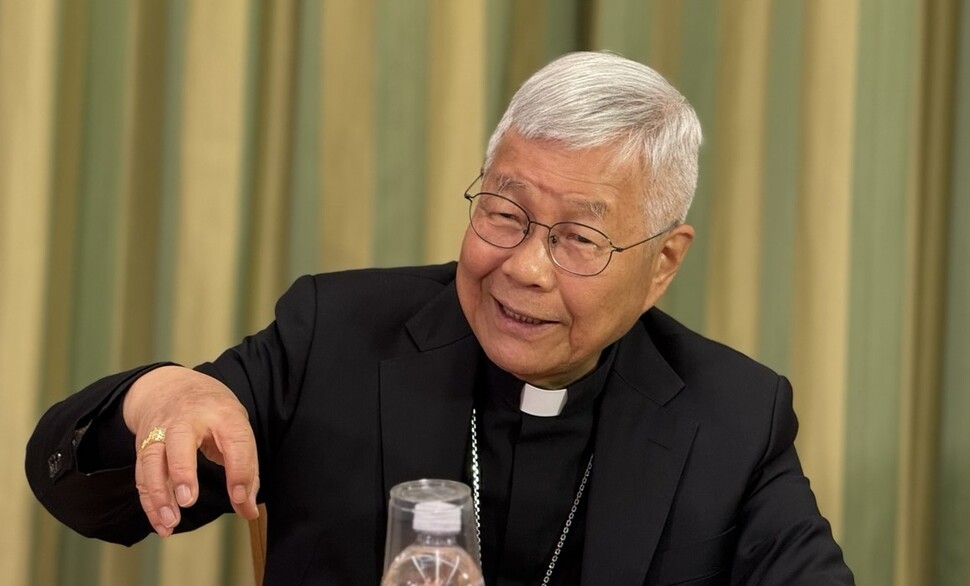 24일(현지시각) 로마 바티칸 교황청 성직자부 한 회의실에서 국내 언론사 기자들과 만난 성직부 장관 유흥식 추기경의 모습. 사진 장예지 특파원 penj@hani.co.kr |