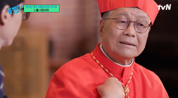 유흥식 라자로 추기경(교황청 성직자성 장관)이 지난해 8월 tvN '유퀴즈 온 더 블럭' 방송에 출연해 발언하고 있다. [사진=tvN]
