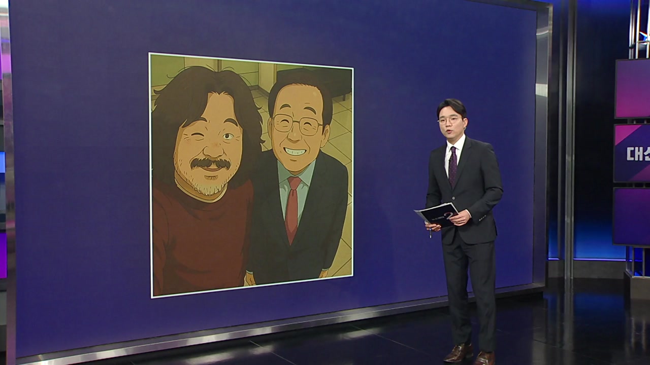 말끔한 정장을 차려입은 오른쪽 인물은 밝게 웃고 있습니다.