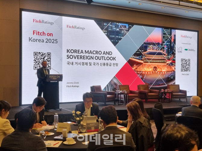 제레미 주크(Jeremy Zook) 피치 아시아·태평양 국가신용등급 담당 이사는 이날 서울 여의도에서 열린 연례 콘퍼런스 ‘피치 온 코리아 2025’에서 최근 한국의 국가신용등급을 ‘AA-(안정적)’로 유지한 배경에 대해 “정치적 변동성에도 대외 수지 및 재정 수지가 우량하다는 점을 확인했다”며 “한국의 여러 기관과 제도가 복원력을 가지고 있다”고 평가했다.