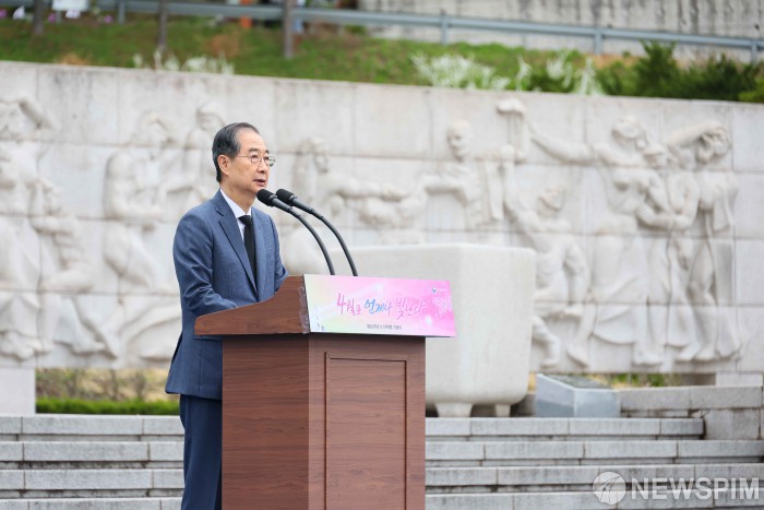한덕수 대통령 권한대행 국무총리가 19일 서울 강북구 국립 4·19민주묘지에서 열린 제65주년 4·19 혁명 기념식에서 기념사를 하고 있다.[사진=총리실] 2025.04.19 photo@newspim.com |