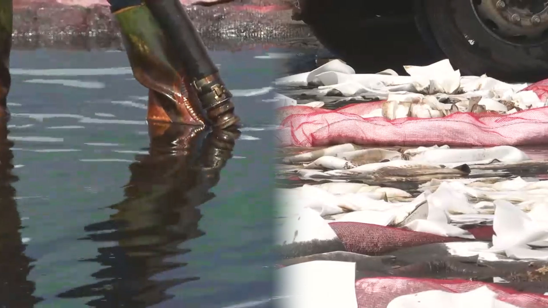 어제(24일) 울산 울주군 송유관 파손으로 유출된 원유가 총 4t으로 추정되는 가운데 당국이 오늘 안에 방제를 마무리할 계획입니다.