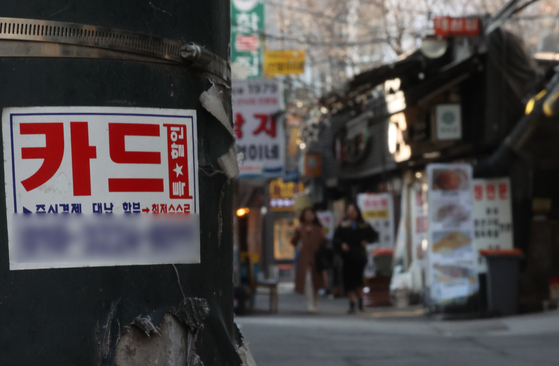 지난 2월 25일 서울시내 한 음식점 골목에 대출 광고가 붙어있다. 뉴시스
